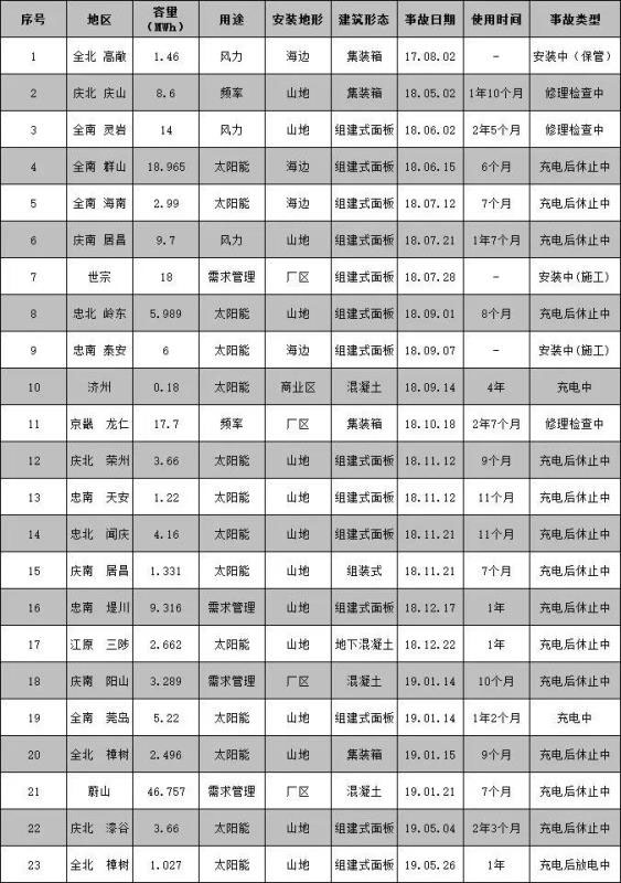 附韓國(guó)儲(chǔ)能電站火災(zāi)項(xiàng)目表