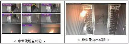 (水分、粉塵試驗(yàn))以在空調(diào)機(jī)周邊發(fā)現(xiàn)的熔融痕跡為證據(jù),在電池系統(tǒng)中模擬了水分、粉塵、鹽水的環(huán)境,試驗(yàn)絕緣性能是否可能降低。結(jié)果表明,特定公司的電池內(nèi)模塊絕緣性能下降并發(fā)生火災(zāi)。