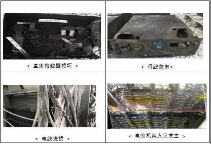 母線(xiàn)損壞后,導(dǎo)致電池機(jī)架保護(hù)裝置附件的二次短路事故發(fā)生,多處同時(shí)出現(xiàn)火災(zāi)。