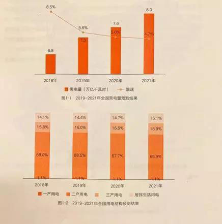 2019年,全社會(huì)用電量同比增長5.6%,用電量達(dá)7.3萬億千瓦時(shí);2020年,全社會(huì)用電同比增長5.0%,用電量達(dá)7.6萬億千瓦時(shí);2021年,全社會(huì)用電同比增長4.7%,用電量達(dá)8.0萬億千瓦時(shí)。