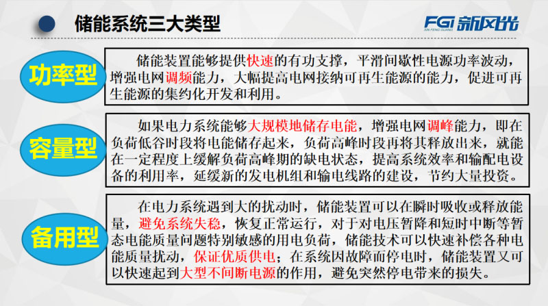 這是儲(chǔ)能系統(tǒng)的三大類型,儲(chǔ)能裝置根據(jù)充放電速度的快慢以及儲(chǔ)能的容量大小分為三種類型: