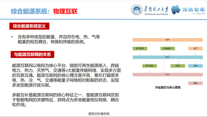 物理互聯(lián)就是多能互補(綜合能源系統(tǒng))的技術(shù),信息互聯(lián)就是先進的信息通信技術(shù),物聯(lián)網(wǎng)技術(shù)也屬于信息互聯(lián)的一部分。另外電力市場機制、共享經(jīng)濟模式我稱為商業(yè)互聯(lián)。在能源互聯(lián)網(wǎng)里,市場機制占很重要的作用,2015年中發(fā)9號文出臺啟動了新一輪電力體制改革。