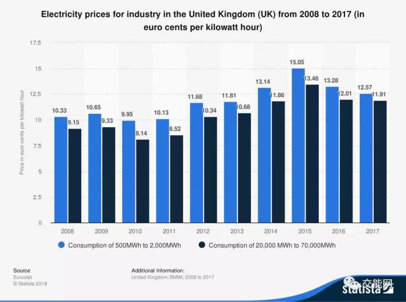 2018年英國(guó)平均電價(jià)為0.22美元每千瓦時(shí),在世界發(fā)達(dá)國(guó)家中處于中游水平。