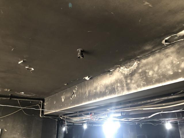 記者來(lái)到事發(fā)地下車(chē)庫(kù)入口處,發(fā)現(xiàn)入口有明顯熏黑痕跡,車(chē)庫(kù)內(nèi)仍有刺鼻氣味殘留,車(chē)庫(kù)頂端有明顯過(guò)火痕跡。