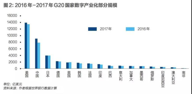 各國(guó)數(shù)字經(jīng)濟(jì)規(guī)模比較
