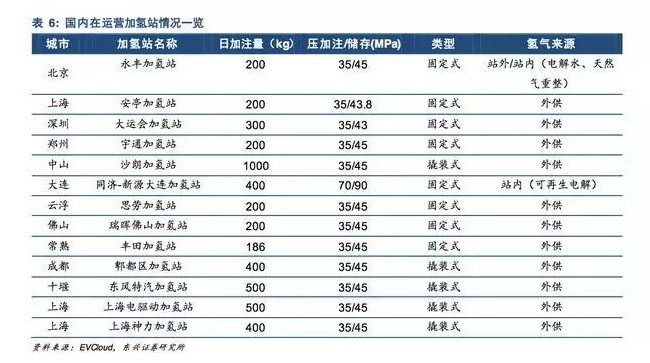 國(guó)內(nèi)截止2018年上半年在運(yùn)營(yíng)的加氫站僅有14座,其中6座位撬裝式,占世界加氫站總數(shù)的2%。主要為示范項(xiàng)目為基礎(chǔ)存續(xù)下來(lái)的加氫站,日加注量主要是500kg以下,且加注壓力主要為35Mpa,僅大連新源動(dòng)力加氫站加注壓力為70Mpa。