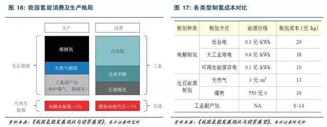 國(guó)內(nèi)由煤、天然氣、石油等化石燃料生產(chǎn)的氫氣占了將近70%,工業(yè)副產(chǎn)氣體制得的氫氣約占30%,電解水制氫占不到1%。