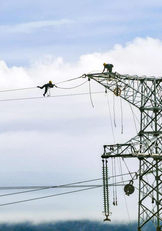 ▼2018年4月28日,國家電網(wǎng)日照供電公司工人架設叩官鎮(zhèn)至兩城高鐵預留站高壓線路,確保兩城高鐵站投入使用后的電力供應,攝影師@高興建