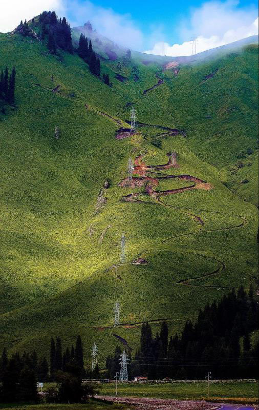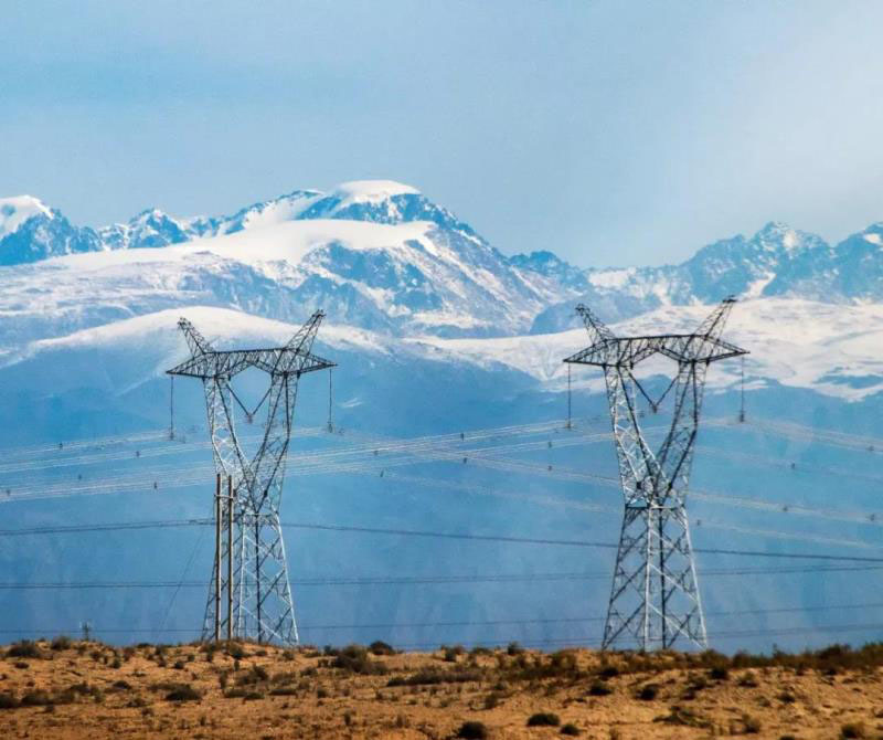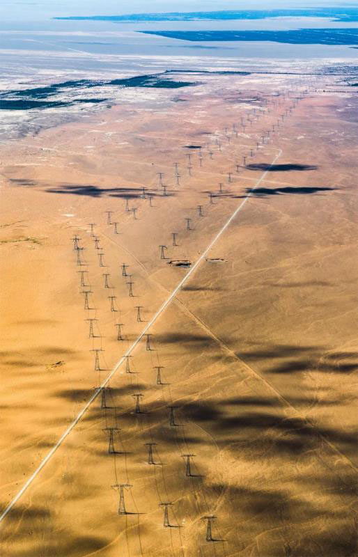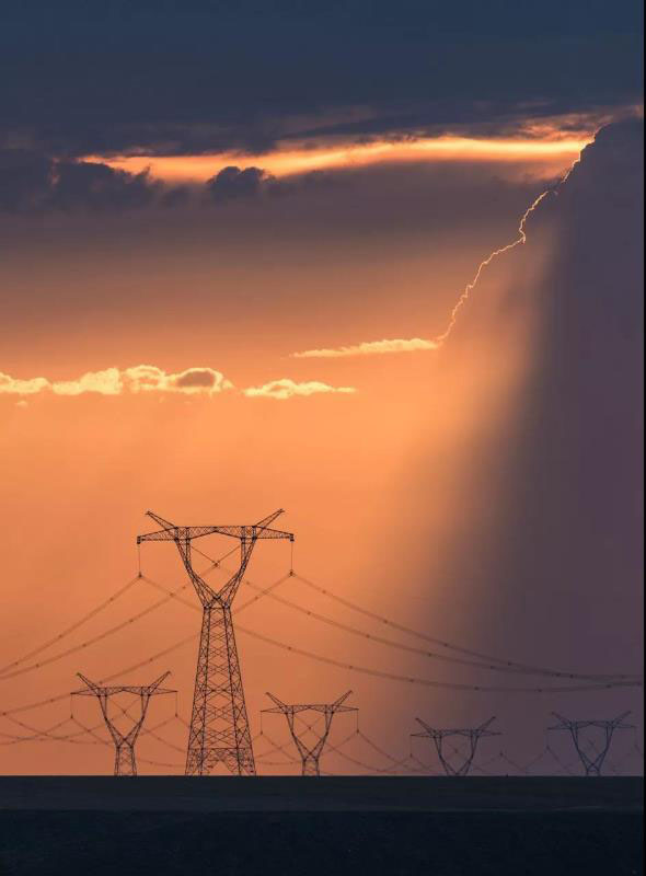 ▼跨越天山的高壓輸電塔,攝影師@劉辰