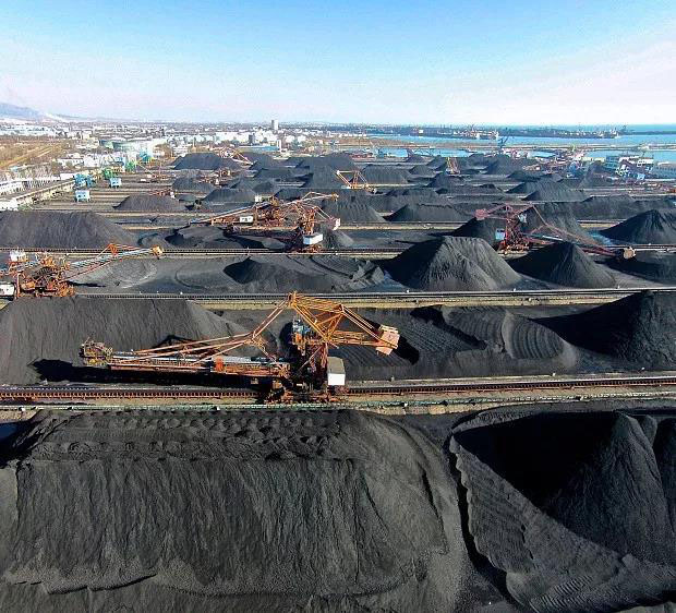 ▼秦皇島港口堆放的煤炭,圖片來源@VCG