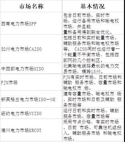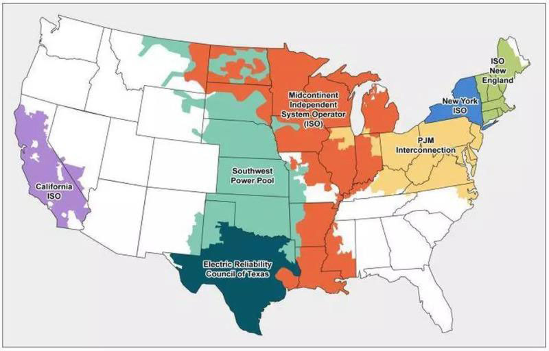 美國(guó)的七個(gè)批發(fā)電力市場(chǎng)