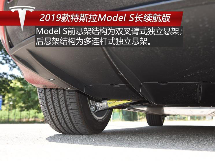 Model S的底盤被護板保護得非常嚴密,其前懸架結構為雙叉臂式獨立懸架 后懸架結構為多連桿式獨立懸架,Model S配備自適應智能懸架,可由車主自主調節(jié)或系統(tǒng)根據(jù)路況信息及駕駛員操作來自動調節(jié)高度和阻尼。