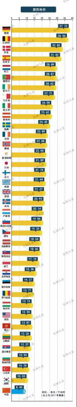 中國的電價到底高不高?前一段時間,網(wǎng)上吵翻了(此處省略1萬字……)。為了讓大家更直觀地了解,中國的電價在世界上到底是啥水平,頭條君收集了2017年世界上37個國家居民和工業(yè)電價的最新數(shù)據(jù)。咱來實打?qū)嵉乇缺瓤础?