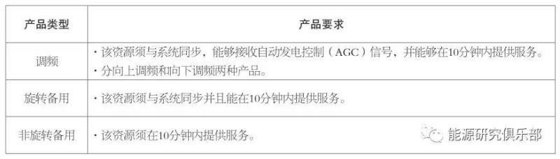 表1 加州傳統(tǒng)輔助服務(wù)產(chǎn)品種類及要求