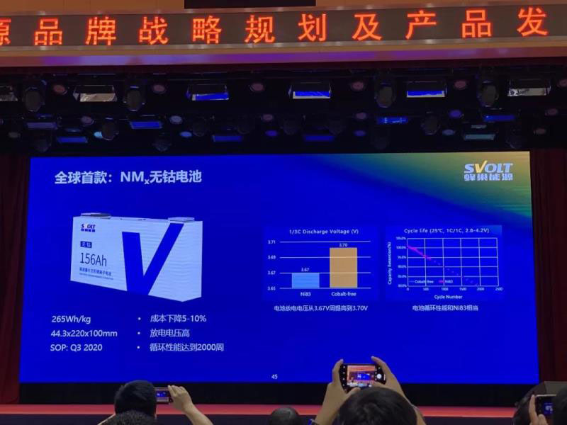 在產(chǎn)品規(guī)劃上,預(yù)計(jì)將在年底前完成材料開發(fā),在2020年3月完成材料體系的進(jìn)一步優(yōu)化,4月實(shí)現(xiàn)材料中試,8月體系定型,2020年第三季度將實(shí)現(xiàn)無(wú)鈷電芯的SOP。