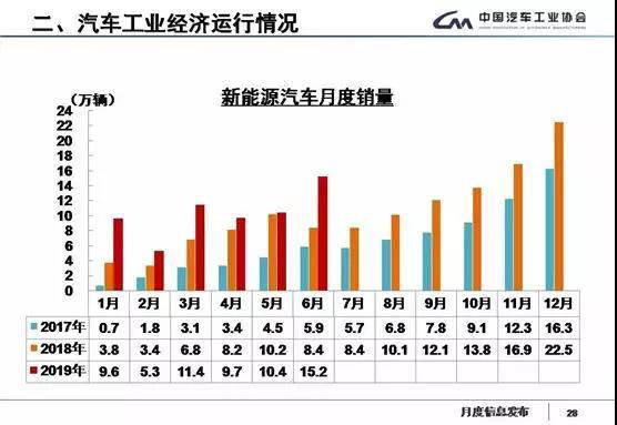 從月度銷量情況來看,新能源汽車市場(chǎng)銷量同比高速增長(zhǎng)。基于對(duì)2019年補(bǔ)貼大幅退坡的預(yù)期,一季度新能源汽車市場(chǎng)出現(xiàn)“搶裝潮”。二季度,補(bǔ)貼新政的出臺(tái)以及過渡期的期限效應(yīng),也在繼續(xù)推動(dòng)新能源汽車的“搶裝”效應(yīng)。