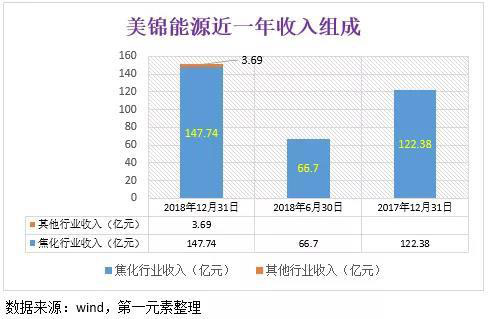 從上圖可以看出,美錦能源近一年來主要收入源于焦化行業(yè),其收入占到了總收入的97.56%,2017年更是達(dá)到100%。