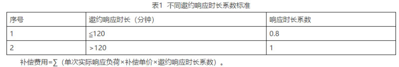 2.實(shí)際邀約次數(shù)不超過(guò)8次時(shí),參與約定需求響應(yīng)的用戶和售電公司按照邀約該用戶次數(shù)和補(bǔ)償基準(zhǔn)價(jià)格計(jì)算補(bǔ)償單價(jià)(補(bǔ)償基準(zhǔn)價(jià)格/邀約該用戶次數(shù),元/千瓦·次),按照邀約響應(yīng)時(shí)長(zhǎng)設(shè)置不同補(bǔ)償價(jià)格系數(shù)。實(shí)際邀約次數(shù)超過(guò)8次時(shí),自第9次起,補(bǔ)償單價(jià)為固定價(jià)格,計(jì)算公式按邀約8次計(jì)算。單次響應(yīng)量在申報(bào)響應(yīng)量的80%-120%之間,按照實(shí)際響應(yīng)量給予補(bǔ)償,單次實(shí)際響應(yīng)量超過(guò)申報(bào)響應(yīng)量的120%,按照申報(bào)響應(yīng)量的120%給予補(bǔ)償,單次實(shí)際響應(yīng)量低于申報(bào)響應(yīng)量80%的不享受補(bǔ)償。