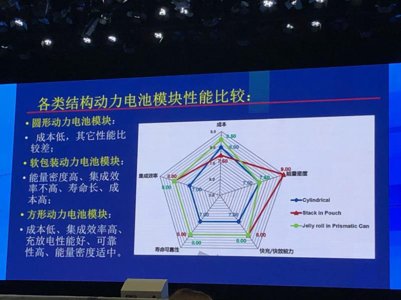 “為什么大家一提到高能量密度就想到軟包裝電池?從車輛工程的角度是看動(dòng)力電池系統(tǒng)的能量密度,而非單體電池的能量密度。從單體電池到模塊,再到系統(tǒng)集成,中間環(huán)節(jié)比較多,電池之間的連接件、模塊之間的連接電纜、箱體、固定架、支撐架、導(dǎo)熱結(jié)構(gòu)等等,這些都會(huì)增加許多重量”,王子冬提出,需要在系統(tǒng)能量密度、可靠性及安全性方面做優(yōu)化。