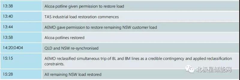 事故發(fā)生流程報(bào)告顯示:昆士蘭和新南威爾士地區(qū)之間的AC交流轉(zhuǎn)換器失效,隨后南澳大利亞(SA)和維多利亞(VIC)之間的AC交流轉(zhuǎn)換器也失效。這兩起事件導(dǎo)致維多利亞、新南威爾士和塔斯馬尼亞的工業(yè)供電中斷,以及新南威爾士的一些居民和商業(yè)用戶供電中斷。