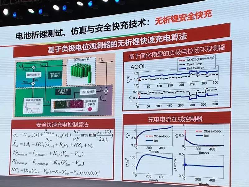 以此為基礎(chǔ),我們可以進(jìn)行最優(yōu)充電的控制,以基于模型的負(fù)極電位觀測器為基礎(chǔ),可以把負(fù)極電位觀測出來的電位,跟參考電位進(jìn)行比較,通過調(diào)整充電電流使這個電位差趨于零可以實現(xiàn)無析鋰的快充。