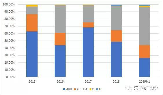 在2018年補(bǔ)貼退坡的一個極端的月份里面,A00級別甚至占到了快80%,此后雖然在年底有反復(fù),但是總體是一路降低,整體的需求被壓制。