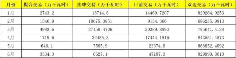 截至6月底,山東雙邊協(xié)商成交電量120.51億千瓦時,月度集中競價成交電量3.83億千瓦時,其中1月份沒有相關(guān)數(shù)據(jù)。