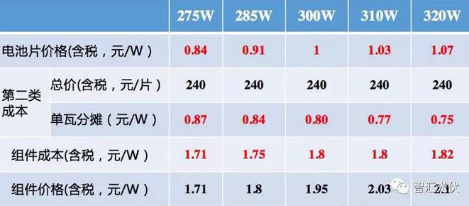 表1:不同效率組件的成本構(gòu)成