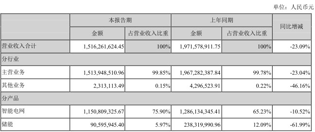 由于宏觀經(jīng)濟(jì)增長放緩,外部融資環(huán)境偏緊,金融市場資金成本大幅上升,公司營運(yùn)資金較緊張,訂單 交付情況不及預(yù)期,報(bào)告期內(nèi),公司實(shí)現(xiàn)營業(yè)收入15.16億元,同比下降23.09%,歸屬于上市公司股東的凈利潤為-7,752.98 萬元,同比下降219.97%。報(bào)告期內(nèi)儲(chǔ)能業(yè)務(wù)營業(yè)收入同比減少 14,772.40 萬元,下降 61.99%,主要系受流動(dòng)性影響,公司儲(chǔ)能產(chǎn)品供應(yīng)鏈整體受到一定限制,產(chǎn)品交付延緩,業(yè)務(wù)規(guī)模有所下降。