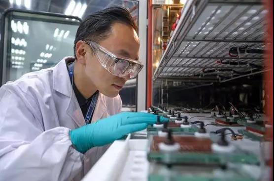 (研究人員正進(jìn)行電芯性能測試)