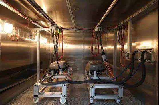 在通用汽車上海電池測試實(shí)驗(yàn)室,單體電池測試實(shí)驗(yàn)室有96個(gè)測試通道,是通用汽車全球電池測試系統(tǒng)的重要組成部分,接近于美國本土通用汽車沃倫實(shí)驗(yàn)室的120個(gè)測試通道。測試項(xiàng)目主要包括溫度測試(零下40°C~85°C)和充放電測試。電池包測試實(shí)驗(yàn)室還可進(jìn)行電池功率特性檢測和溫濕度耐久試驗(yàn)。以溫濕度耐久試驗(yàn)為例,電池包會在溫箱模擬出的各種惡劣溫濕度環(huán)境中測試幾個(gè)月之久。