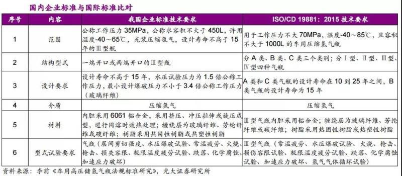 目前我國(guó)已經(jīng)實(shí)施能夠適用于35MPa和70MPa的高壓儲(chǔ)氫瓶的相應(yīng)標(biāo)準(zhǔn)GB/T35544-2017《車用壓縮氫氣鋁合金內(nèi)膽碳纖維全纏繞氣瓶》。