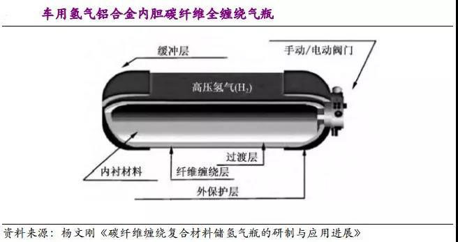 復(fù)合材料儲(chǔ)氫氣瓶由內(nèi)至外包括內(nèi)襯材料、過渡層、纖維纏繞層、外保護(hù)層、緩沖層。