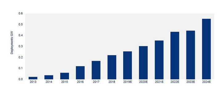 隨著儲能系統(tǒng)成本的不斷降低,Wood Mac公司預(yù)計(jì)經(jīng)濟(jì)狀況和市場增長將繼續(xù)改善。