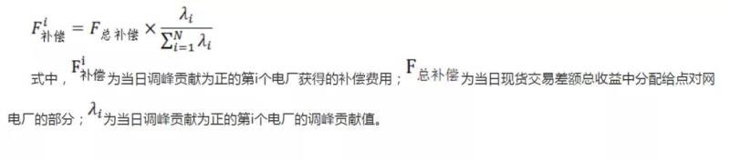 分配給“點(diǎn)對網(wǎng)”發(fā)電機(jī)組、京津唐電網(wǎng)域內(nèi)發(fā)電機(jī)組的收益納入京津唐電網(wǎng)并網(wǎng)發(fā)電廠調(diào)峰輔助服務(wù)管理體系,根據(jù)每日調(diào)峰貢獻(xiàn)率的比例分配給調(diào)峰貢獻(xiàn)率為正值的發(fā)電機(jī)組。具體算法如下: