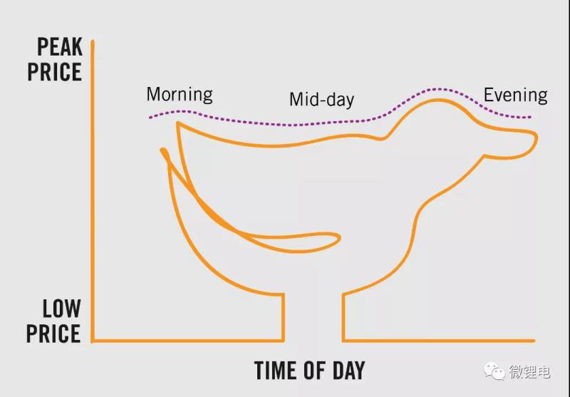 太陽能發(fā)電是“胖鴨子”的時代在過去十年中,電力價格從凌晨12點(diǎn)左右開始大幅下跌,在中午12點(diǎn)左右觸底,到傍晚時分又開始上漲。從圖表上看,這種用電模式導(dǎo)致了電價曲線類似于一只“更胖”的鴨子,因為鴨子的肚子垂得越來越低——見圖2。