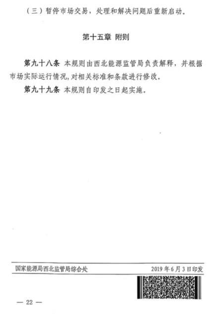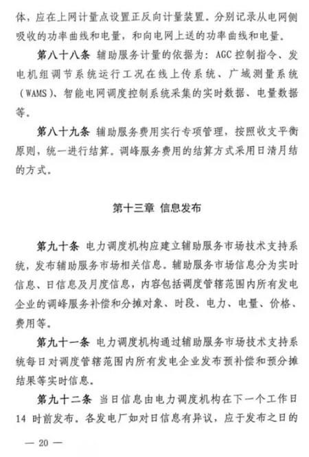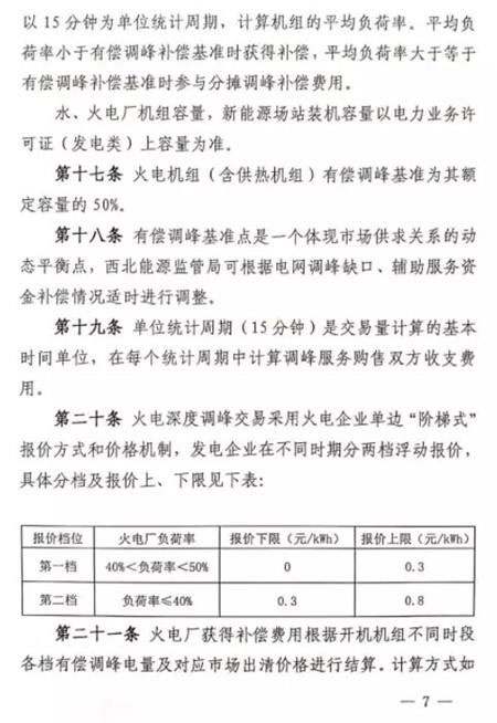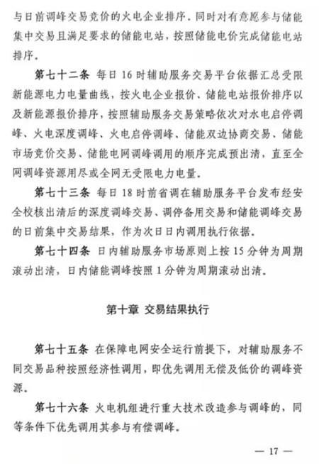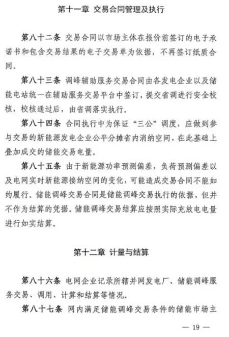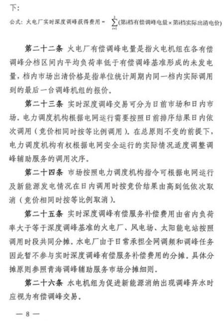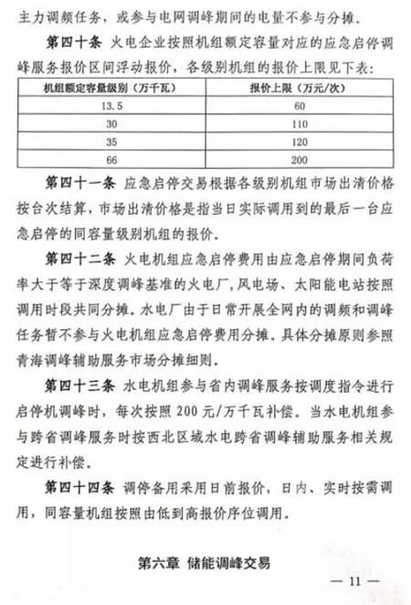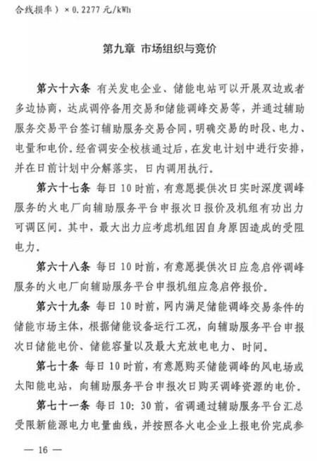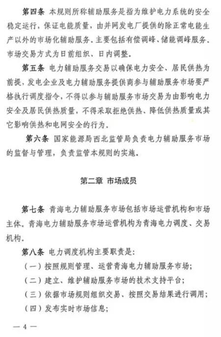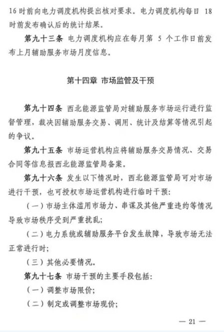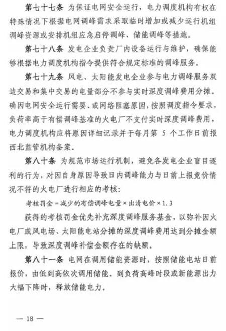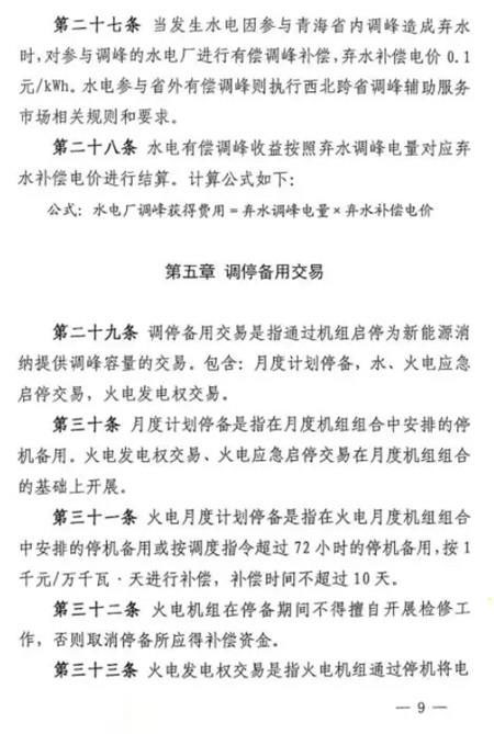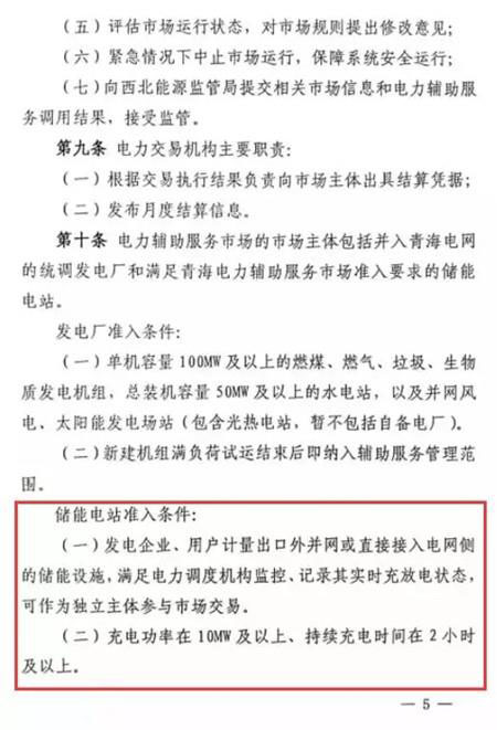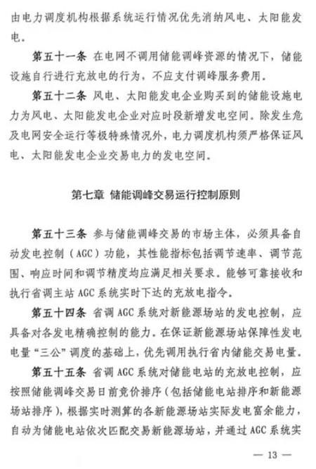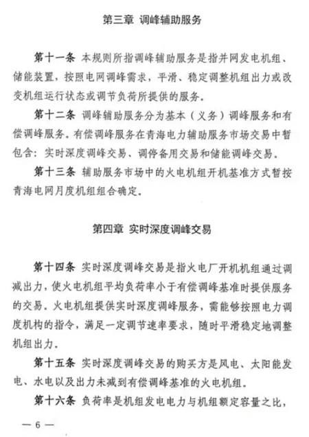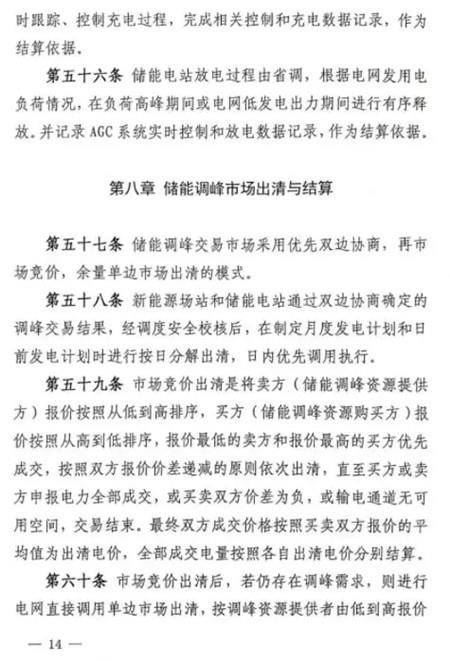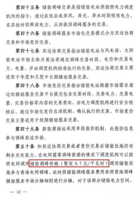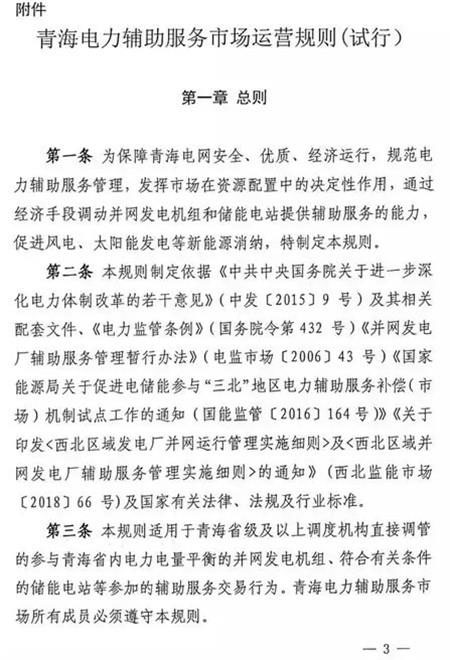 第五十條 如雙邊協(xié)商交易或者競(jìng)價(jià)交易后儲(chǔ)能設(shè)施仍有剩余充電能力,在電網(wǎng)需要調(diào)峰資源的情況下調(diào)度機(jī)構(gòu)可以按照電網(wǎng)調(diào)用儲(chǔ)能調(diào)峰價(jià)格(暫定0.7元/千瓦時(shí))調(diào)用儲(chǔ)能設(shè)施參與青海電網(wǎng)調(diào)峰。此時(shí)段儲(chǔ)能調(diào)峰服務(wù)費(fèi)用參照青海調(diào)峰輔助服務(wù)市場(chǎng)分?jǐn)偧?xì)則進(jìn)行分?jǐn)?。?duì)于該部分儲(chǔ)能電力空間,由電力調(diào)度機(jī)構(gòu)根據(jù)系統(tǒng)運(yùn)行情況優(yōu)先消納風(fēng)電、太陽(yáng)能發(fā)電。第五十一條 在電網(wǎng)不調(diào)用儲(chǔ)能調(diào)峰資源的情況下,儲(chǔ)能設(shè)施自行進(jìn)行充放電的行為,不應(yīng)支付調(diào)峰服務(wù)費(fèi)用。第五十二條 風(fēng)電、太陽(yáng)能發(fā)電企業(yè)購(gòu)買到的儲(chǔ)能設(shè)施電力為風(fēng)電、太陽(yáng)能發(fā)電企業(yè)對(duì)應(yīng)時(shí)段新增發(fā)電空間。除發(fā)生危及電網(wǎng)安全運(yùn)行等極特殊情況外,電力調(diào)度機(jī)構(gòu)須嚴(yán)格保證風(fēng)電、太陽(yáng)能發(fā)電企業(yè)交易電力的發(fā)電空間。詳細(xì)文件如下: