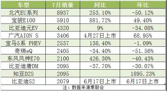 據(jù)高工電動(dòng)車統(tǒng)計(jì),7月銷量榜單TOP 10乘用車型累計(jì)銷售了3.59萬輛,占國內(nèi)當(dāng)月新能源乘用車52%的市場(chǎng)份額,占據(jù)了過半的市場(chǎng)份額。