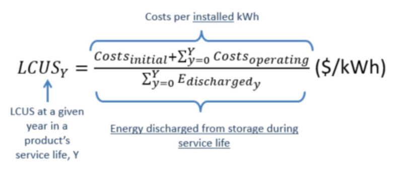 因此,簡(jiǎn)單地說(shuō),儲(chǔ)能系統(tǒng)平準(zhǔn)化使用成本(LCUS)是儲(chǔ)能系統(tǒng)的每次使用成本。