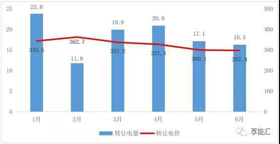 1-6月,共組織6次發(fā)電合同轉(zhuǎn)讓協(xié)商交易,累計成交電量31.53億千瓦時,平均成交價格270.8厘/千瓦時,主要出讓方為省內(nèi)關(guān)停的燃煤機組。