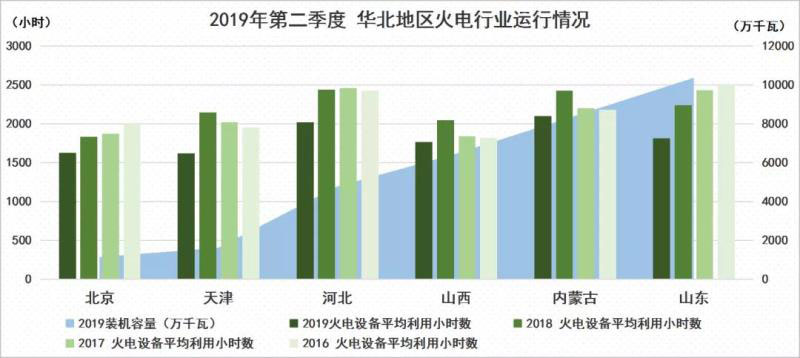 從火電設(shè)備平均利用小時(shí)數(shù)上看,華北地區(qū)均出現(xiàn)明顯下滑,北京、天津、河北、山西、內(nèi)蒙古、山東分別同比下滑206小時(shí)、528小時(shí)、422小時(shí)、278小時(shí)、327小時(shí)、425小時(shí)。