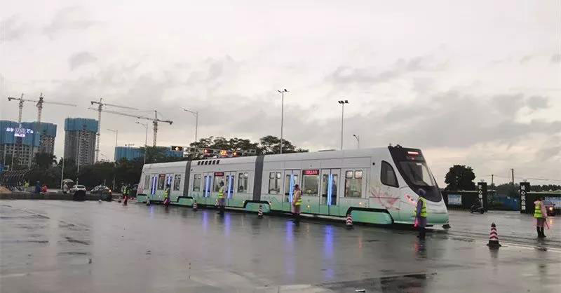 早在7月26日凌晨,該輛有軌電車已經(jīng)從佛山中車基地運輸?shù)胶筛宦讽椖空€上,為確保列車運輸安全,車內(nèi)加注了氮氣。