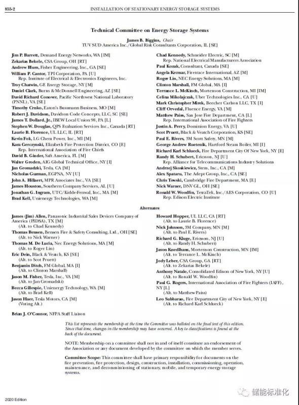 NFPA 855自2016年開始制訂,NFPA 855標準技術(shù)委員會綜合考慮了600多項公眾因素,收到了800多條公眾意見。TüV南德意志集團全球風險顧問公司常務(wù)顧問James Biggins是該標準委員會的主席。