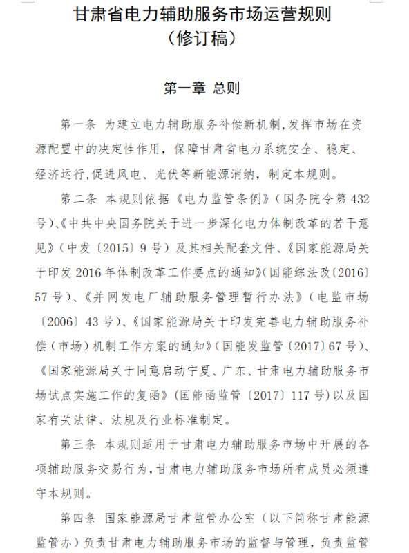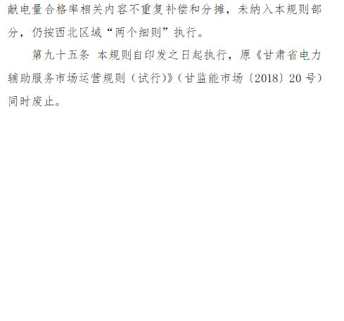 現(xiàn)征求對(duì)《甘肅省電力輔助服務(wù)市場(chǎng)運(yùn)營(yíng)規(guī)則 (修訂稿)》意見建議(請(qǐng)各單位自行到甘肅能源監(jiān)管辦門戶網(wǎng)站重要文件專欄下載規(guī)則內(nèi)容)。請(qǐng)各單位認(rèn)真研究,于2019年9月20日之前將意見建議反饋至我辦,逾期不回復(fù)視為無意見。