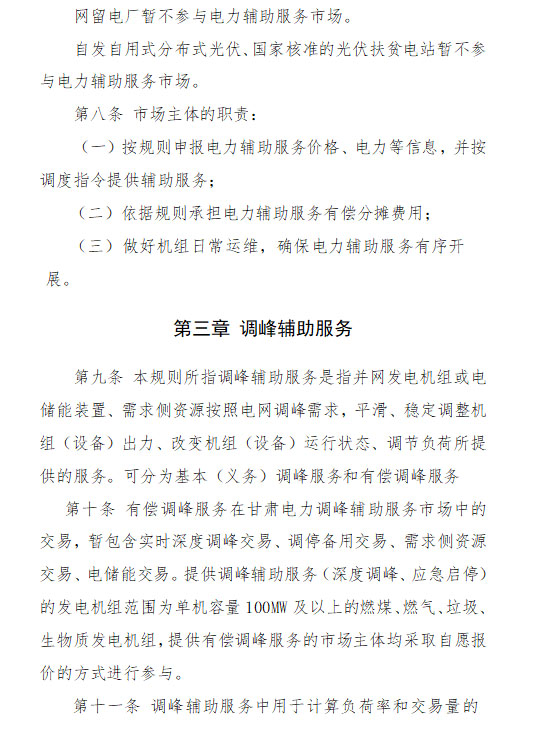 中國(guó)儲(chǔ)能網(wǎng)訊:9月18日,甘肅能源監(jiān)管辦印發(fā)關(guān)于征求對(duì)《甘肅省電力輔助服務(wù)市場(chǎng)運(yùn)營(yíng)規(guī)則(修訂稿)》意見建議的通知。通知指出:甘肅電力輔助服務(wù)市場(chǎng)自2018年4月1日運(yùn)營(yíng)以來,充分發(fā)揮市場(chǎng)引導(dǎo)作用,在推動(dòng)火電機(jī)組靈活性改造,提升系統(tǒng)調(diào)節(jié)能力,促進(jìn)新能源消納等方面取得了顯著成效。為進(jìn)一步完善輔助服務(wù)市場(chǎng)運(yùn)行機(jī)制,配合甘肅現(xiàn)貨市場(chǎng)試點(diǎn),我辦結(jié)合一年來調(diào)峰市場(chǎng)運(yùn)行情況,對(duì)現(xiàn)行《甘肅省電力輔助服務(wù)市場(chǎng)運(yùn)營(yíng)規(guī)則(試行)》規(guī)則進(jìn)行修訂、完善,在調(diào)峰輔助服務(wù)基礎(chǔ)上增加調(diào)頻輔助服務(wù),并通過會(huì)議等形式聽取了各方對(duì)調(diào)頻市場(chǎng)規(guī)則的意見建議,同時(shí)對(duì)調(diào)峰市場(chǎng)部分條款進(jìn)行了修改。