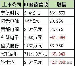 具體上市公司H1儲(chǔ)能營(yíng)收情況如下: