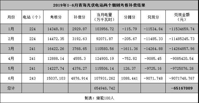 統(tǒng)計顯示,2019年1-6月,青海光伏電站考核補(bǔ)償兌現(xiàn)總金額為-6516.7009萬元,風(fēng)電場站兌現(xiàn)總金額為-3077.7264萬元,兩者合計罰款約為9594萬元。