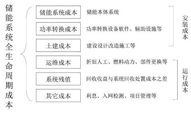 根據(jù)時長要求的不同,儲能的應(yīng)用場景大致可以分為容量型(≥4小時)、能量型(約1~2小時)、功率型(≤30分鐘)和備用型(≥15分鐘)四類。不同應(yīng)用場景對儲能技術(shù)的性能要求有所不同,而儲能成本則是決定儲能技術(shù)應(yīng)用和產(chǎn)業(yè)發(fā)展規(guī)模最重要的參數(shù)。基于儲能全生命周期建模的儲能平準化(度電)成本是目前國際上通用的儲能成本評價指標。