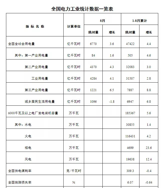 中國(guó)儲(chǔ)能網(wǎng)訊:9月18日,國(guó)家能源局發(fā)布1-8月份全國(guó)電力工業(yè)統(tǒng)計(jì)數(shù)據(jù)。