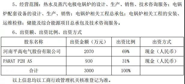 公告顯示,合作企業(yè)PARAT P2H AS有限公司,經(jīng)營(yíng)范圍包含電極電鍋爐的設(shè)計(jì)、生產(chǎn)、工程總承包,以及儲(chǔ)能、電網(wǎng)調(diào)頻、綜合能源工程總承包及技術(shù)咨詢服務(wù)等。
